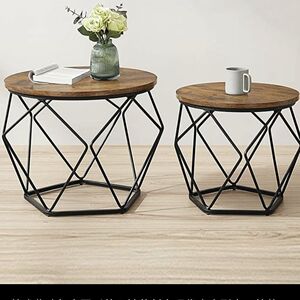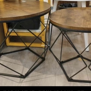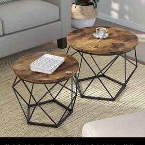 北欧复古圆形茶几实木网红铁艺创意现代小户型简约家用客厅卧室