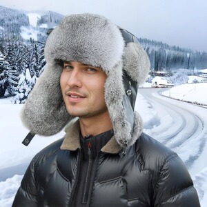 新しい外国貿易毛皮牛革ウサギの毛雷峰帽子メンズ冬厚く暖かい耳保護帽子クロスボーダー毛皮防寒帽子