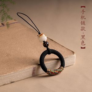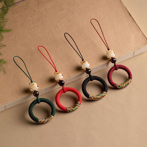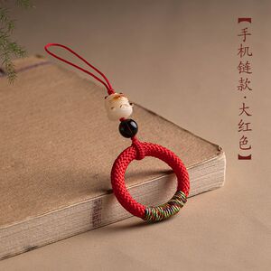 古风指环扣手机链挂饰招财猫汽车钥匙挂饰手工编织绳手腕款男女士