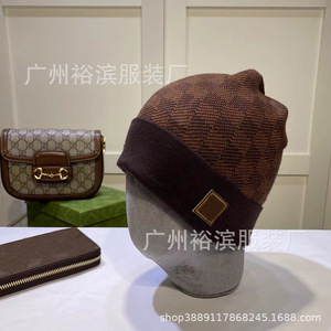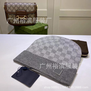 ヨーロッパとアメリカの貿易ビッグブランド秋冬人気Lホームチェック柄ウール帽子レディースカジュアル防寒帽子メンズ暖かいニット帽子卸売