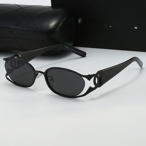 2025新型潮中古風サングラス金属透かし彫り小枠猫眼形サングラスネット赤男女ファッション