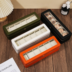 高端PU皮革金属包边金边6位朋克风手表手链盒首饰收纳展示包装盒