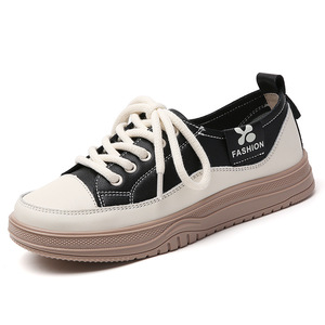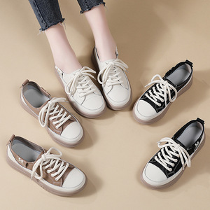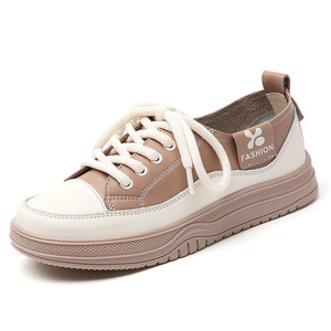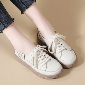 メーカー本革ソフトソール白靴女性の韓国風厚底レースアップカジュアルシューズ春と秋の新しい滑り止めスポーツシューズ