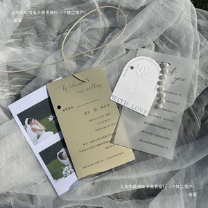 杏色风珍珠请帖结婚2025婚礼定 制邀请函个性喜帖清新请柬