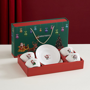 国境を越えたアマゾンクリスマスプレゼント陶磁器食器皿4杯2皿食器セットサンタクロース対外貿易食器ケース