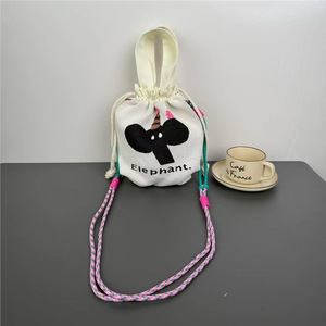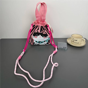 ニットバケットバッグ女性漫画オリジナルパターンかわいいカジュアル多用途巾着ポータブルショルダーバッグランチバッグ福袋