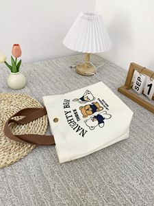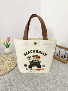 新しいクマのキャンバスバッグ女性のための仕事学生ハンドバッグハンドランチボックス収納ギフトバッグキャンバスバッグ