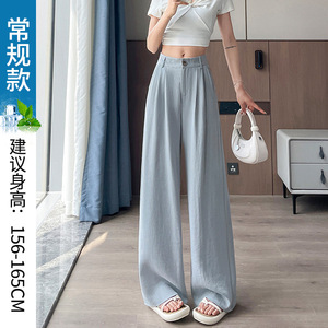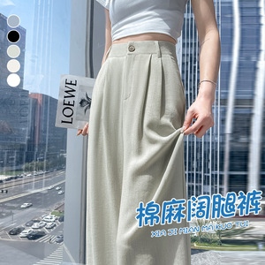 アイスシルクコットンとリネンのスーツワイドレッグパンツレディース夏薄いリネンパンツハイウエストルーズドレープカジュアルストレート山本パンツ