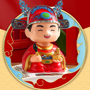 工場直販ソーラー装飾品、頭を振る富の神、富と宝を引き寄せるクリエイティブな車の装飾品、ソーラーホーム装飾品