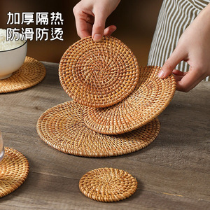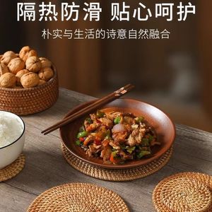 藤編み断熱マット家庭用水洗い可能な異臭のない断熱防熱カップマットレトロな手織り滑り止めマット