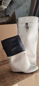クロスボーダー新ヨーロッパとアメリカの秋と冬の新しいロックバックルウェッジレディースブーツハイヒールポインテッドトゥスリッポンレディースブーツ
