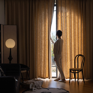 2025新型フランス式リネンカーテン新中国式日本式シンプル現代客間書斎透光半遮光カスタム
