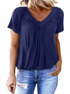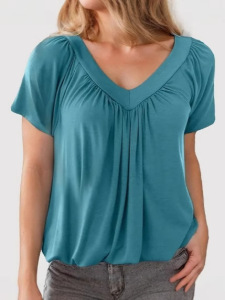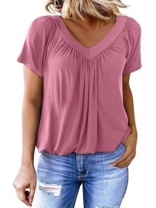 2025年アマゾンヨーロッパとアメリカの国境を越えた売れ筋の新しいパーソナライズされたVネックラグランスリーブプリーツカジュアルデイリーホームTシャツ