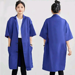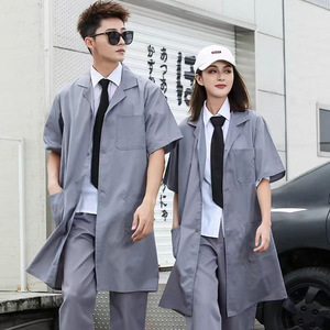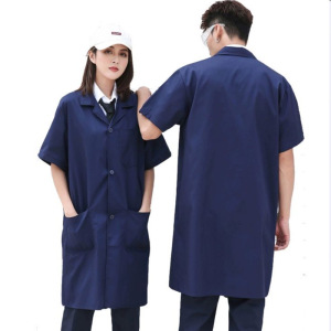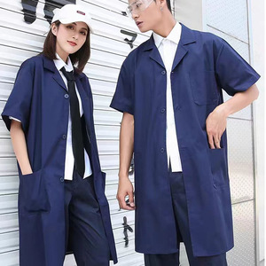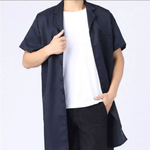 ブルーコート半袖作業服メンズロング防汚倉庫食品工場運搬作業服プリント夏通気性