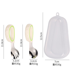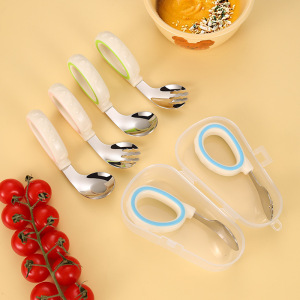 316 ステンレス鋼の赤ちゃんが食べることを学ぶスプーン、幼児が独立して食べるためのスプーン、子供用スプーンとフォークのポータブルセット