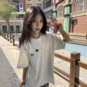 2025 夏の新アメリカンレトロ刺繍綿半袖 Tシャツ女性の怠惰なスタイルイントレンド超人気学生トップ