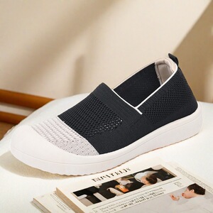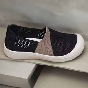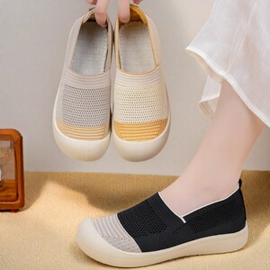 ローカットフラットヒール、滑り止め、通気性、ソフトソールの女性用シューズ、フライニットメッシュのスリッポン、デイリースプリングとオータムのカジュアルシューズ