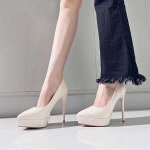 ヌードレッドソール防水プラットフォームハイヒール秋と冬の尖った女性の薄い2025新しいパテントレザーセクシーなファッショナブルな靴