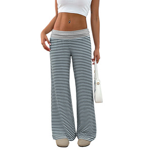 2025 新しいホットガールローウエストパンツヨーロッパとアメリカのクロスボーダー外国貿易パンツカジュアルホームカラーブロックストライプワイドレッグパンツ女性用