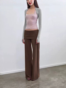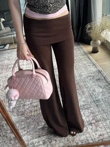 「ウォーキング」の復刻版、折りたたみウエストニットルーズキュロット、ブラウン/ダークグレー