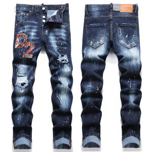 外贸新款朋克男式破洞D2牛仔裤男装油漆刺绣修身破洞中腰男裤4015