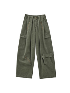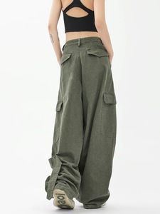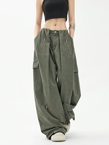 アメリカンレトロミリタリーグリーン空挺部隊パンツ夏のオーバーオール女性のルーズハイウエストワイドレッグパンツフロアモップパンツ