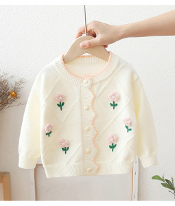 女の子用セーター、綿糸カーディガン、春秋服、小さな女の子、ベビーセーター、子供用ニットジャケット、幼児用菱形模様