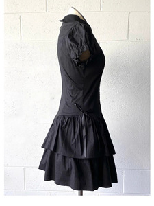 スタイリッシュでレトロな衣装、カレッジスタイルのレースステッチブルーレトロシャツドレス、ヴィンテージスタイルのスカート