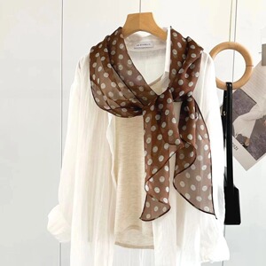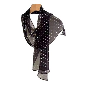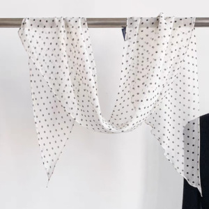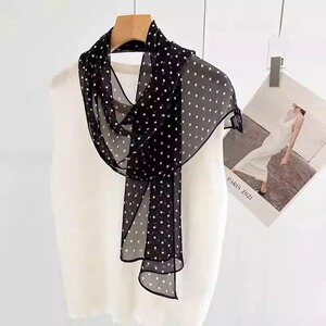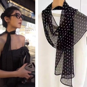 100% 绢糸フランスヘップバーン黒い波点の长い条の小さいスカーフの女性のシルクの斜めのリボンの长い薄いマフラー