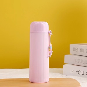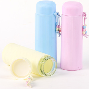 创意双珠杯竖纹双层玻璃杯高颜值防烫便携带提手开业广告礼品杯子