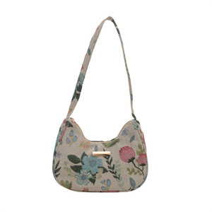 クロスボーダーの新型キャンバスの脇の下に大容量の小衆の文芸のショルダーバッグのファッション的な花の美しい条の絨毯の新月の包みを包みます。
