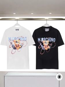 2025年ミュウミュウ MOSホームベアプリントロゴラウンドネック半袖Tシャツメンズトレンド新作の正しいバージョン