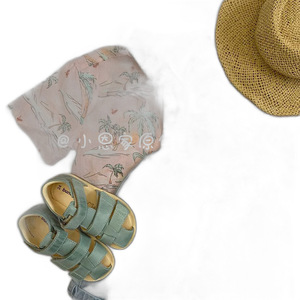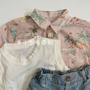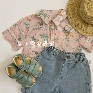 男の子スーツ子供半袖花柄シャツジーンズ2025年夏新作大きな子供用ファッショナブルなデザイン白くて薄い
