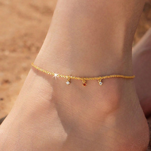 925銀の雪の粒のジルコンの波の光の足の鎖はきわめて簡単です。