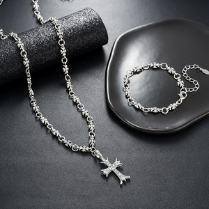 クロウハートネックレスメンズダイヤモンドホワイトゴールドクロスブレスレットレディースレトロタイシルバーヨーロピアンスタイルファッション多用途ジュエリー