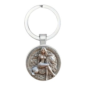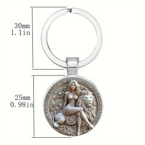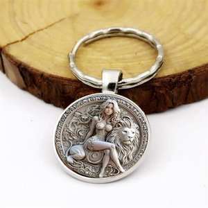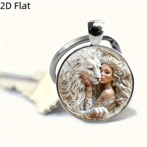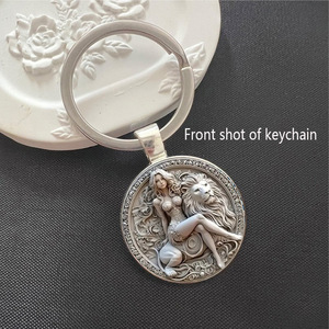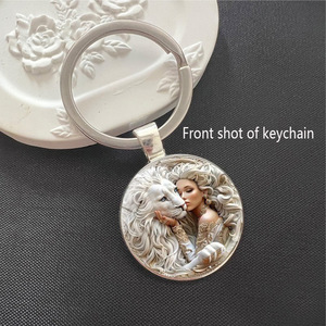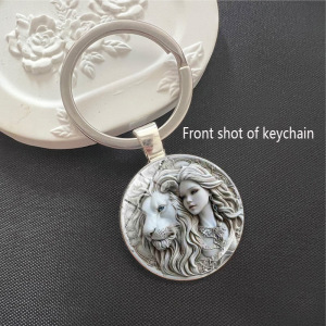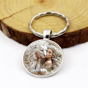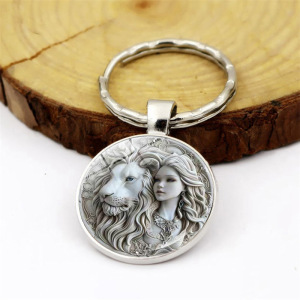 クロスボーダーの外国貿易の銀色の美人と獅子の図案の円形のガラスの合金のペンダントのキーホルダーのメーカーは直接販売します。