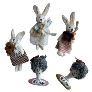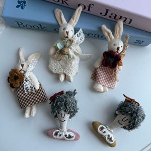 フォレストコットンとリネン生地フォレストアクセサリー女性のための多用途日本新鮮な女の子生地ウサギ人形アクセサリーブローチ