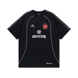 Paris B 2024 新サッカースポーツウェアの正しいバージョンロゴ刺繍プリントルーズ半袖 T シャツ男性と女性用