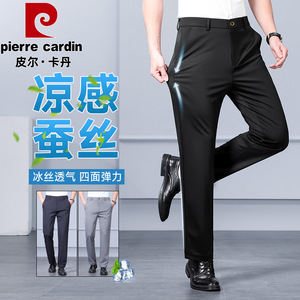 メンズ ピエールカルダン マルベリーシルク カジュアルパンツ 夏 薄手 ドレープ 通気性 ビジネス 通勤 カウンターモデル