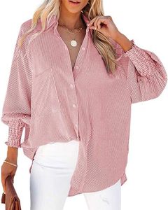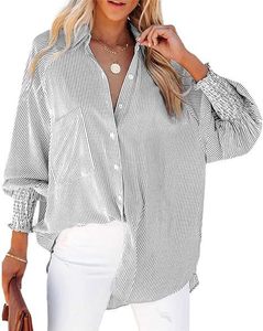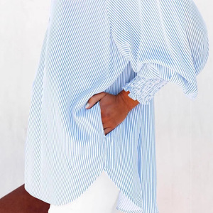 欧米のクロスボーダーアマゾン速売通ストライプ長袖ゆるいシャツカジュアル婦人服新型ポケットシャツ上着