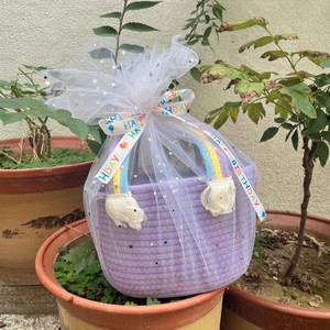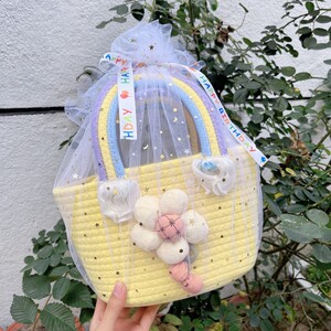 円筒形ハンドバスケット - イエロー + 星と月の糸 + ランダムなリボン