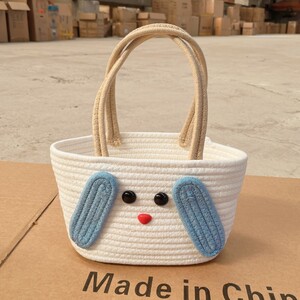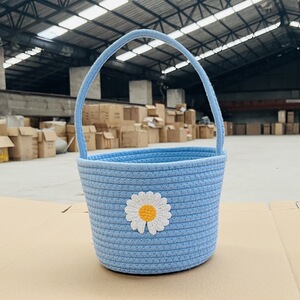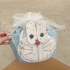 円筒形ハンドバスケット - ブルー + 星と月の糸 + ランダムなリボン