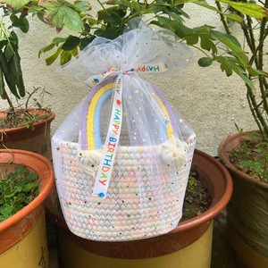 卸売レインボーポータブルバスケット赤ちゃん満月ギフト子供の百日宴会お土産織り誕生日ギフトボックス
