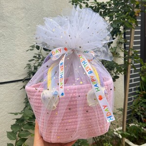 円筒形ハンドバスケット - ピンク + 星と月の糸 + ランダムなリボン