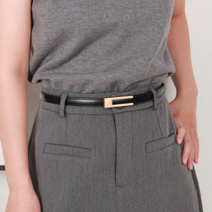 スーツスカートに合う女性用細いベルト、シンプルで万能なスナップボタンのズボンベルト、ウエストを飾る黒の小さなベルト