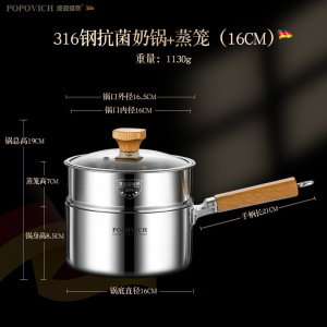16cm/極厚ミルクポット+グレードアップ両耳蒸し器【ヘルシー316L医療グレード】