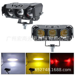 オートバイスポットライトデュアルカラー LED ヘッドライト 3 目スポットライトハイ/ロービーム防水電動バイクヘッドライトデビルアイ