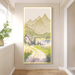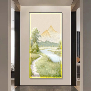奶油风led带灯入户玄关装饰画走廊过道挂画壁画客厅现代风景灯画
