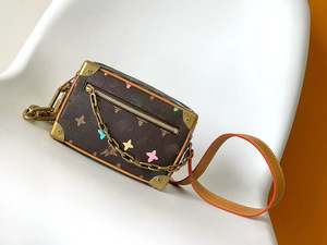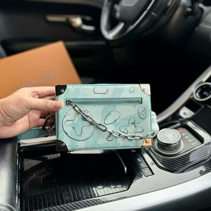 新品trunkメンズ斜めがけバッグ四角いケースバッグクラシック老花ショルダーバッグカメラバッグチェーンバッグ鉄の足のカバン