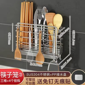 304 ステンレス鋼の箸収納ボックスキッチン箸ケージ壁掛け箸ケージ家庭用スプーン箸バレル収納ラック
